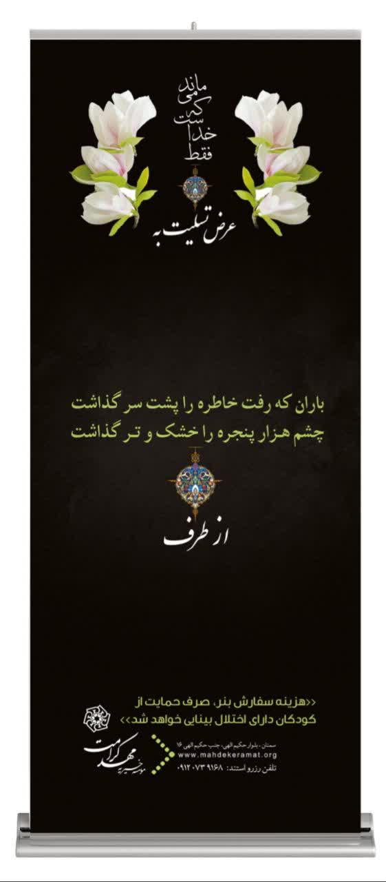 در روزهای وداع، مهربانی را ماندگار کنیم… ️بهجای هزینه برای تاج گل یا پذیرایی، میتوان یاد عزیزان از دسترفته را با کاری ماندگار زنده نگه داشت. با سفارش استند تسلیت از موسسه خیریه مهد کرامت، هزینه آن صرف حمایت از کودکانی میشود که با اختلالات بینایی زندگی میکنند و چشمبهراه مهربانی ما هستند. ️این بنر، تنها یک پیام تسلیت نیست نشانی است از یاد، احترام و انساندوستی.