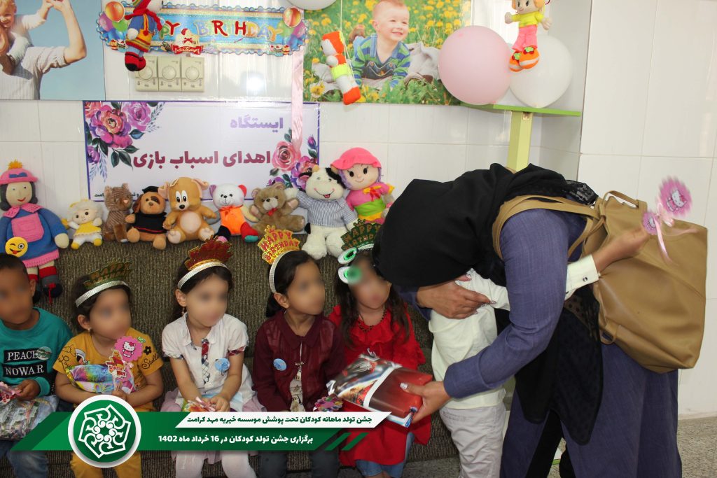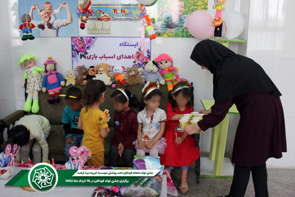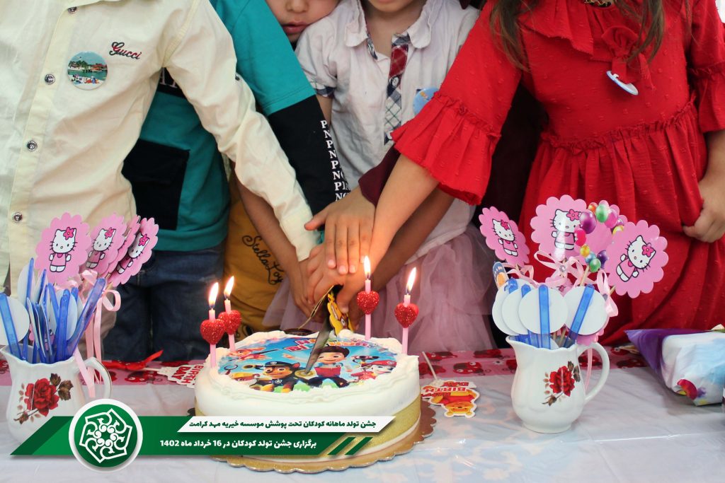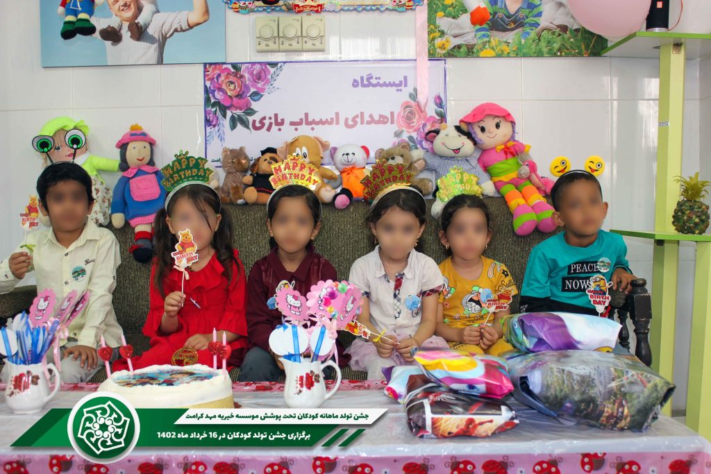 برنامه جشن تولد ماهانه کودکان تحت پوشش موسسه خیریه مهد کرامت هر ماه با هدیه و کیک تولد ادامه خواهد داشت که نیکوکاران میتوانند با ارسال هدایا، کیک تولد و کمکهای نقدی در این کار خیر شریک باشند.