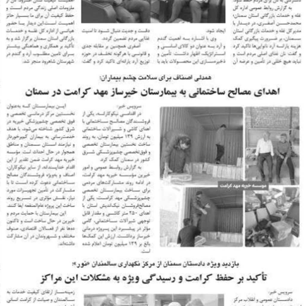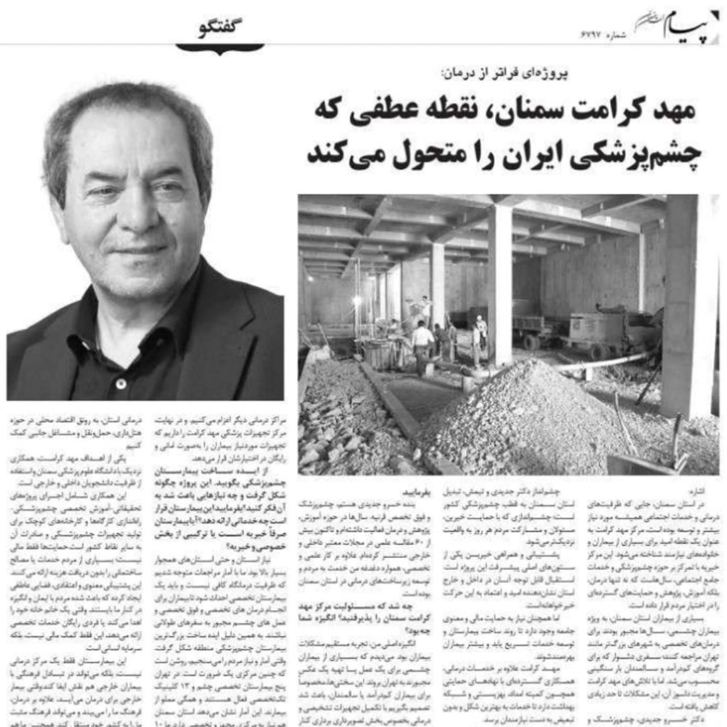 خیرین برای ساخت بیمارستان فوق تخصصی چشم پزشکی سمنان سه هزار و 500 میلیارد ریال کمک کردند