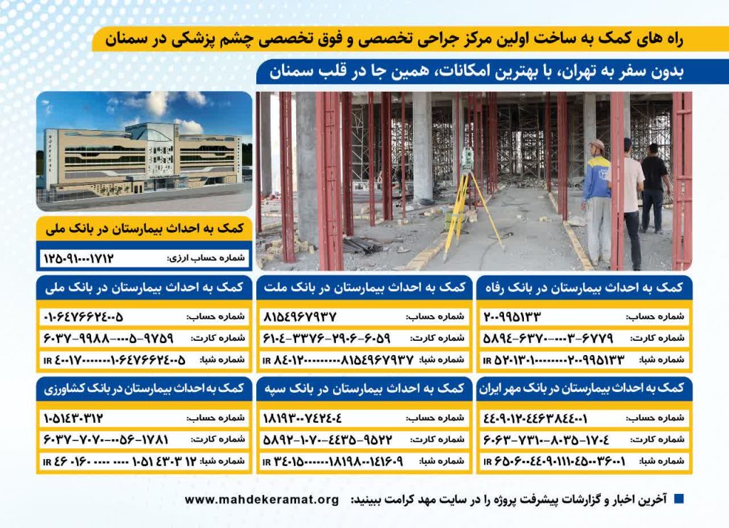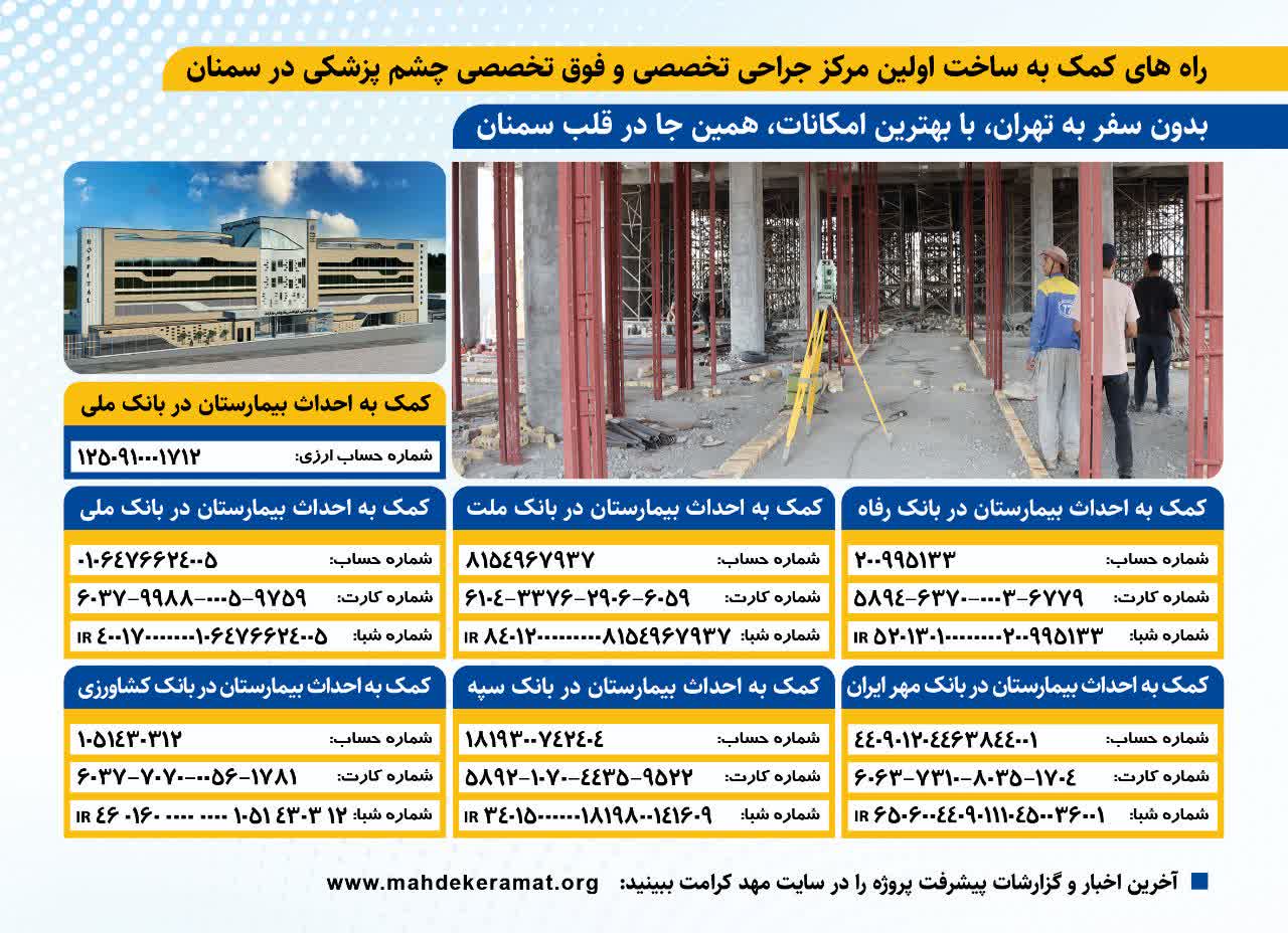 کمک به احداث اولین بیمارستان تخصصی و فوق تخصصی چشم پزشکی خیر ساز شرق کشور در سمنان